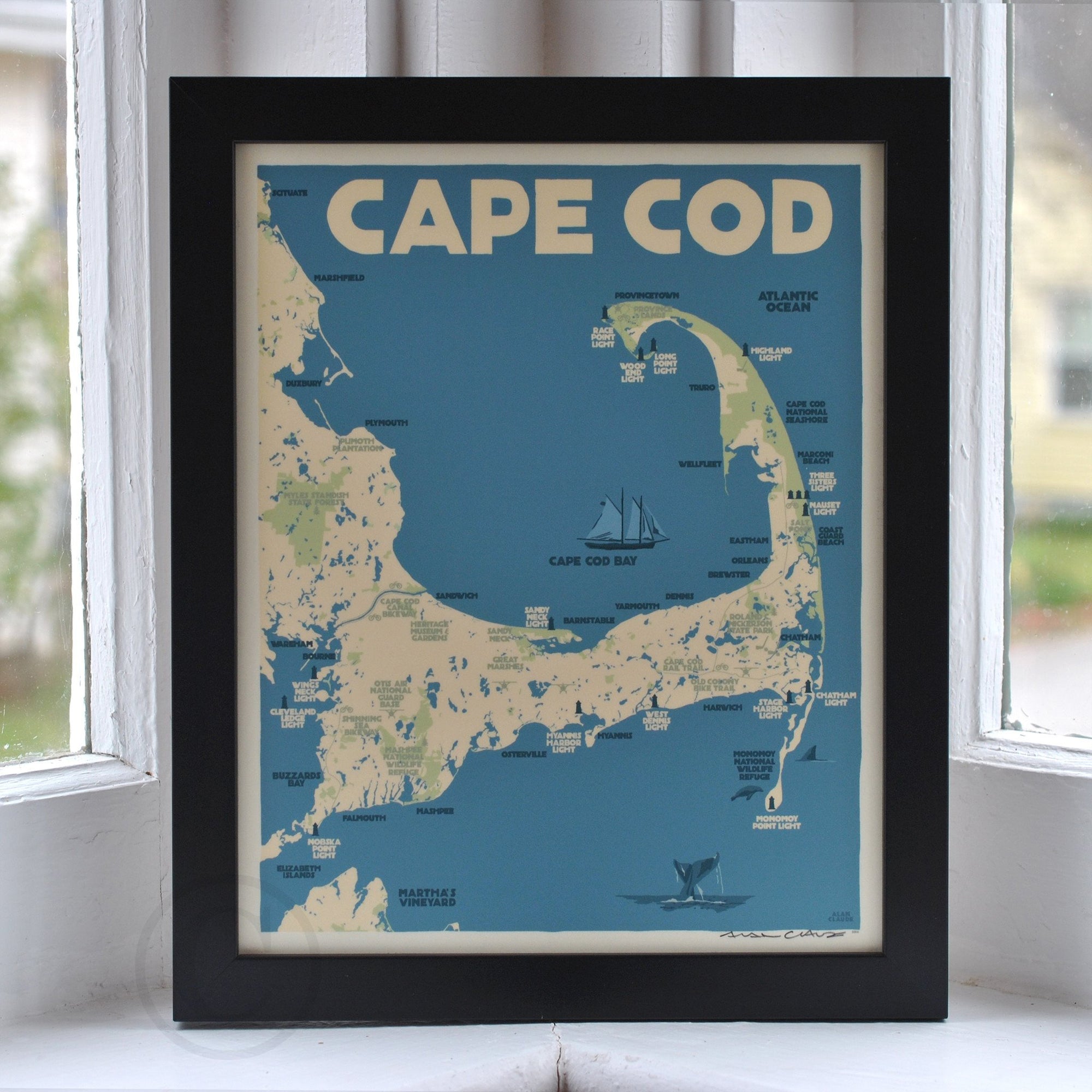 Cape Cod Map Art Print 8″ x 10″ Framed Travel Poster By Alan