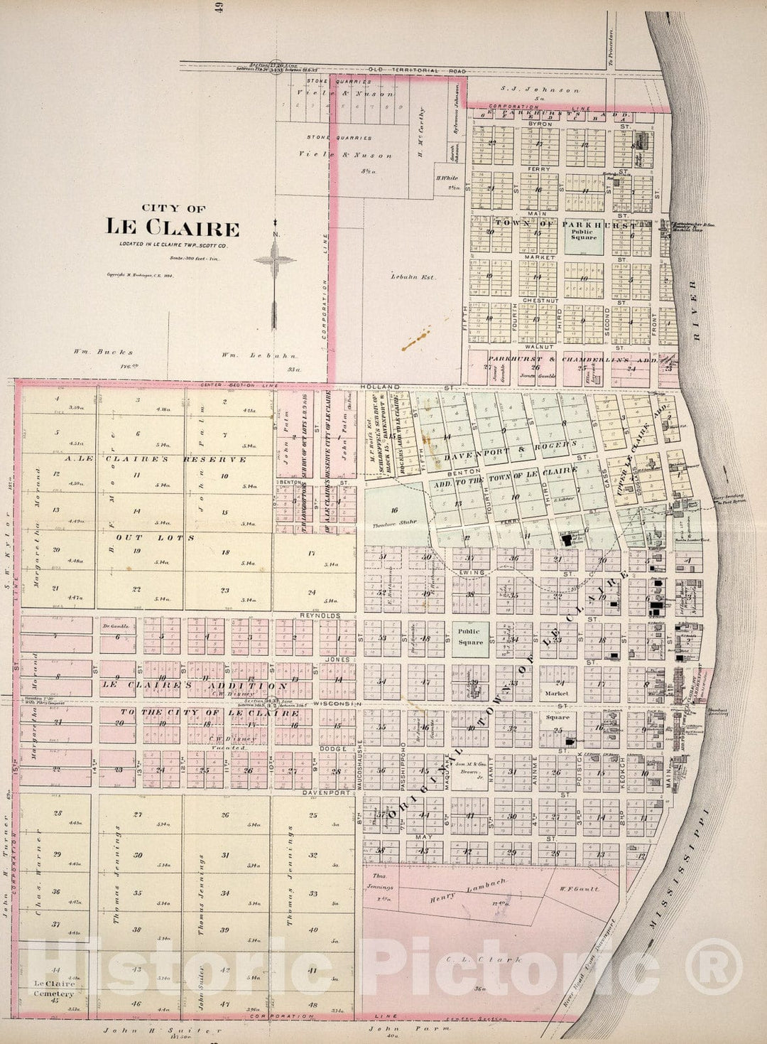 Historic Map : Le Claire, Iowa., 1894, Vintage Wall Art – Historic