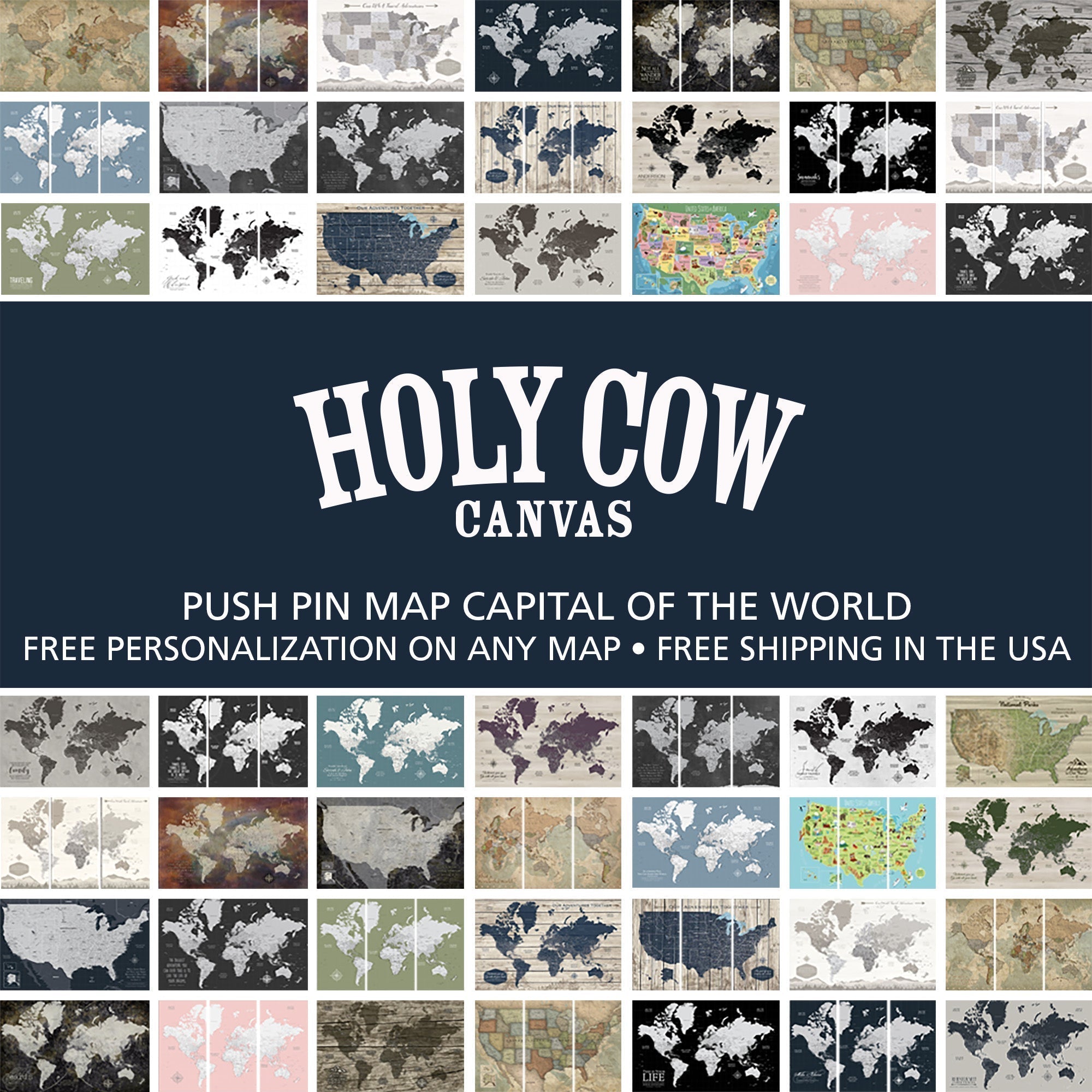 Amazon.com: Holy Cow Canvas Personalized Push Pin Map of the World